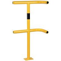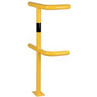 Poste para barreira de proteção modular. Estabilidade garantida graças à sua fixação por placa. A galvanização permite a sua utilização em espaços exteriores. Boa visibilidade graças à cor amarela para segurança de trânsito com faixa preta. Instalação fácil. Os componentes individuais do sistema estão fixos sem parafusos.