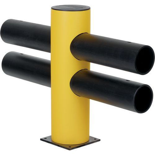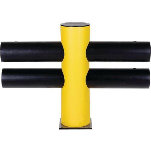 Poste para barreira de segurança Hotel, absorve a energia e retorna à sua forma original após uma colisão. Permite separar as zonas pedonais das zonas de armazenamento de mercadoria ou de circulação de máquinas de movimentação. Material não corrosivo, para utilização em espaços exteriores e interiores. Elevada resistência a raios UV e a produtos químicos, ISO/TR 10358. Certificação TÜV.