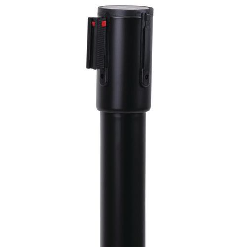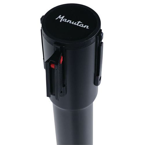 Poste em preto com correia de 5 m – aço – base com rodízios – Manutan Expert Poste em preto com correia de 5 m – aço – base com rodízios – Manutan Expert