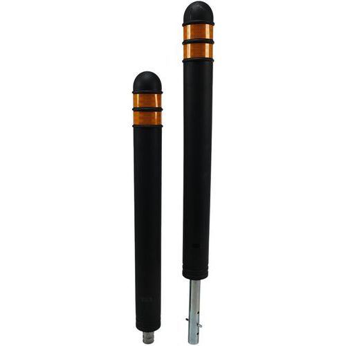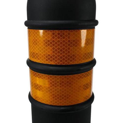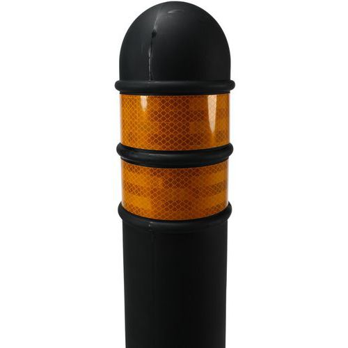 Baliza flexível com memória de forma que não danifica os veículos. Em caso de impacto, o poste deforma-se e volta à forma inicial sem quebrar a ancoragem. Utilizado para a separação de zonas em cidades e em parques de estacionamento. Muito alta visibilidade à noite graças às faixas refletoras. Poste robusto.