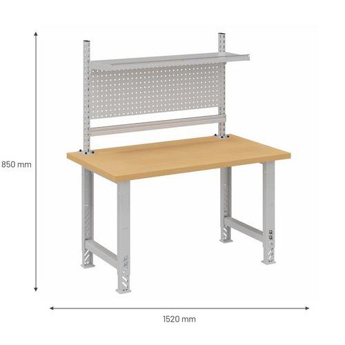 | Nome do artigo | Posto de montagem regulável com prateleira – 500 kg – Manutan Expert, Carga máx.: 500 kg, Altura: 850 mm |