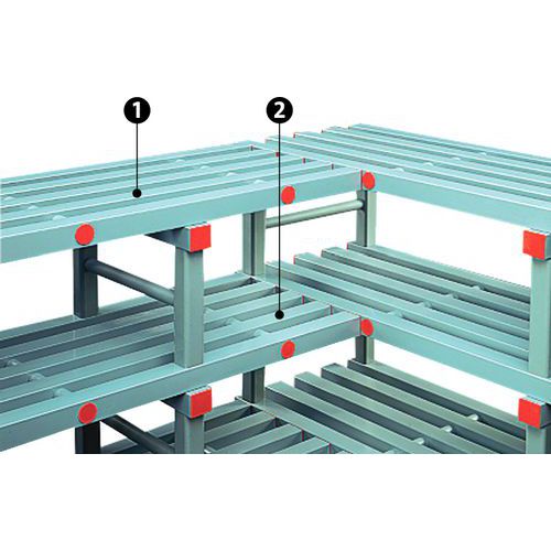 Complete a sua estante Poly-Store com um elemento de prateleira de canto. Cantos arredondados para uma boa preservação dos produtos armazenados. Resistente aos sais e ácidos presentes nos produtos alimentares. Fabricado em material sintético muito resistente e antichoque.
