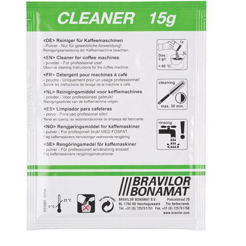 | Nome do artigo | Produto de limpeza Bravilor para o jarro de vidro, Capacidade (Volume): 60 saquetas |