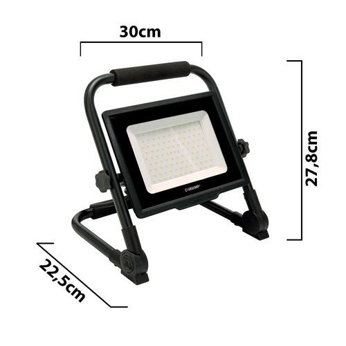Projetor de trabalho LED com suporte de terra – Velamp, Fluxo luminoso: 4000 lm, Potência: 50 W