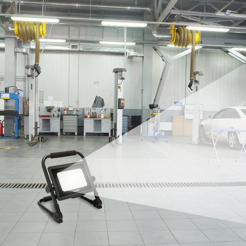 Potência: o projetor LED de poupança de energia de 50 W/4000 lumens ilumina o estaleiro com uma luz branca natural (4000 K) e torna as condições de trabalho ideais, mesmo em espaços exteriores (IP65).