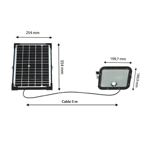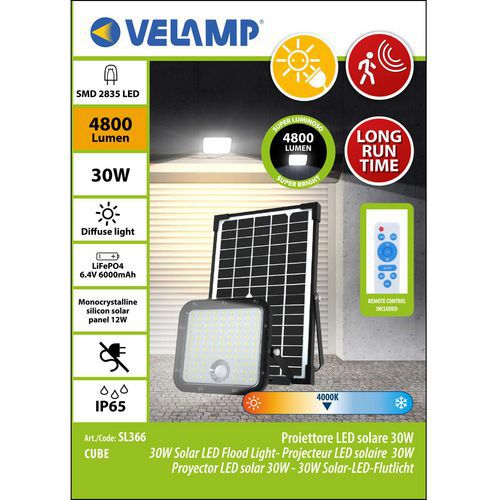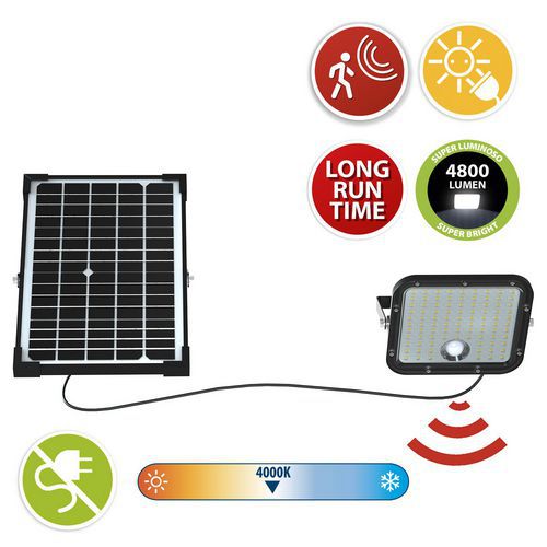 | Nome do artigo | Projetor LED solar com detetor de movimento + painel, Fluxo luminoso: 4800 lm, Potência: 30 W |