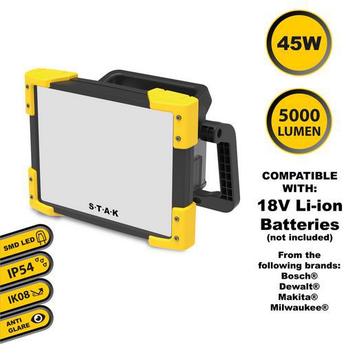 Projetor para baterias X-BLAST PRO – 18 V – 5000 lm – Stak, Fluxo luminoso: 5000 lm, Potência: 45 W