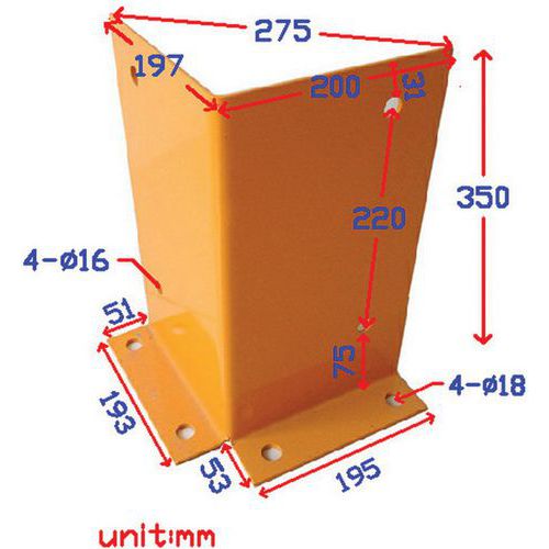 Proteção para pés das escadas contra choques e embates. Acabamento em tinta epóxi amarela para uma melhor visibilidade. Boa resistência aos choques graças à fixação ao solo por placa.