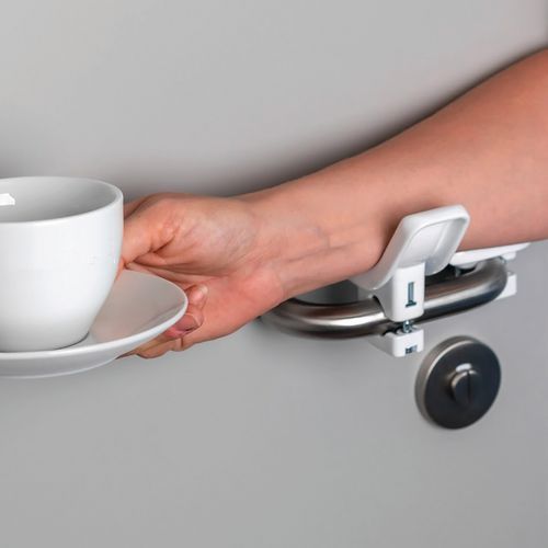 Sistema de abertura de portas ergonómico e higiénico com o antebraço ou o cotovelo.