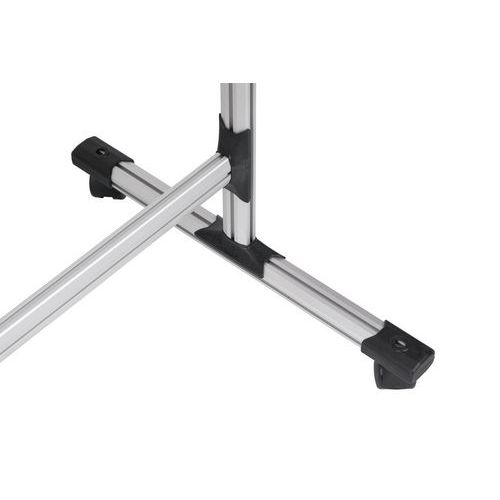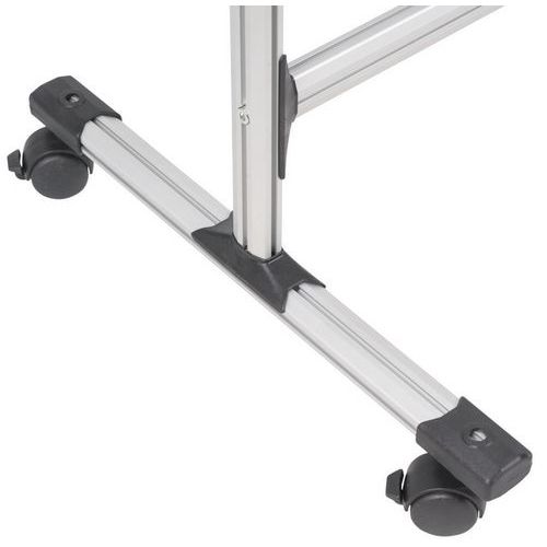 - Possui uma estrutura em alumínio leve, mas robusta, montada em quatro rodízios bloqueáveis para maior estabilidade.