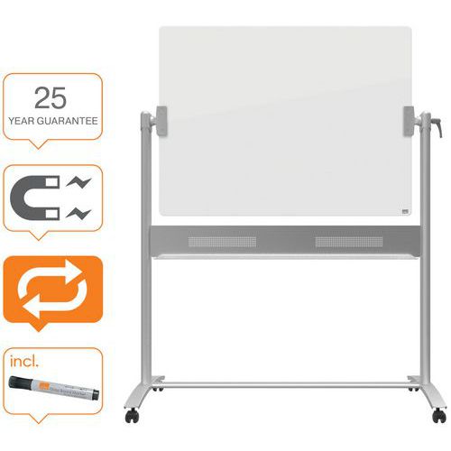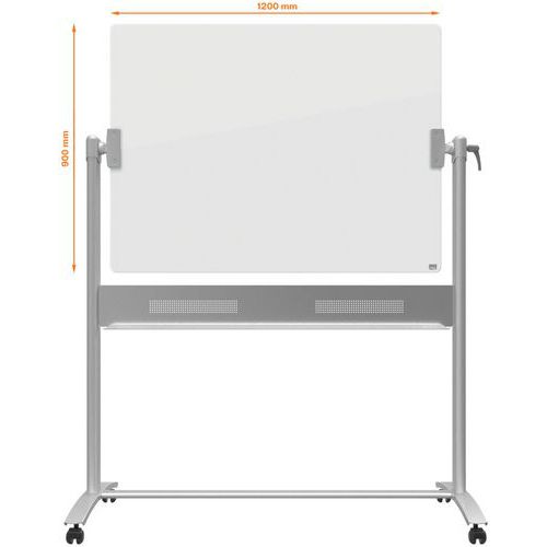 | Nome do artigo | Quadro branco giratório móvel em vidro branco brilhante – Nobo, Superfície de escrita: Vidro, Altura: 90 cm |