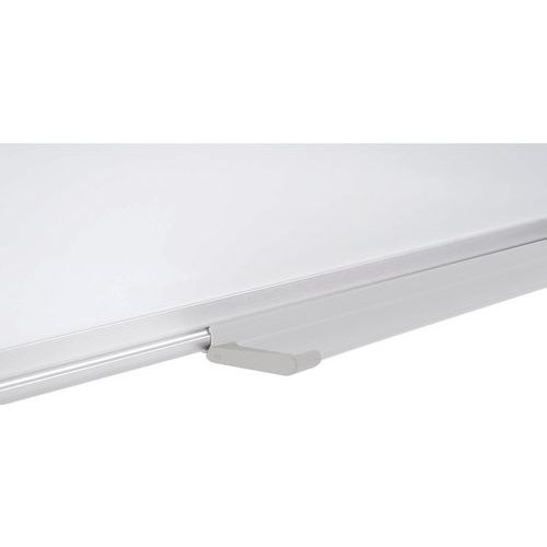 Quadro branco magnético lacado de elevada qualidade. Grande conforto de escrita graças à superfície em aço lacado. Parte de trás do quadro em softboard. Pode ser utilizado para escrever ou afixar objetos graças ao revestimento magnético. Resistente e elegante graças à moldura em alumínio. Prático graças à calha de arrumação incluída. Fácil de apagar a seco. Fixação simples e rápida à parede. 4 perfurações atrás nos 4 cantos (3,5 mm de diâmetro). Orifícios de fixação ocultos por tampas de parafusos em plástico.