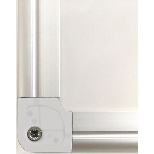 Quadro branco magnético lacado de elevada qualidade. Grande conforto de escrita graças à superfície em aço lacado. Parte de trás do quadro em softboard. Pode ser utilizado para escrever ou afixar objetos graças ao revestimento magnético. Resistente e elegante graças à moldura em alumínio. Prático graças à calha de arrumação incluída. Fácil de apagar a seco. Fixação simples e rápida à parede. 4 perfurações atrás nos 4 cantos (3,5 mm de diâmetro). Orifícios de fixação ocultos por tampas de parafusos em plástico.