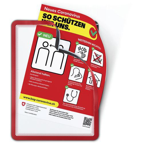 - Quadro de exposição com bolsa Tarifold, de formato A4, com verso totalmente magnético.