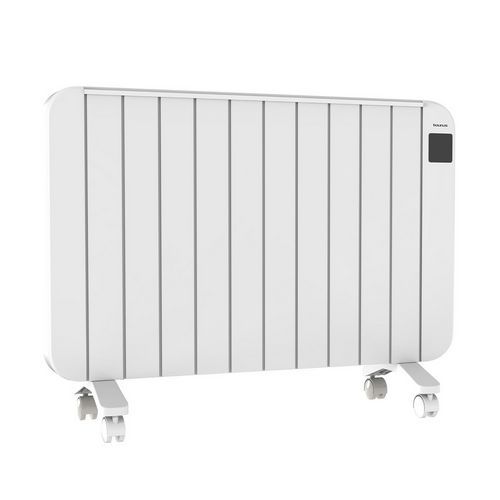 Estrutura em alumínio. Possibilidade de fixação na parede. Visor LED com comando tátil. Controlo digital da temperatura (5–30 °C). Modo ECO/conforto/anticongelamento. Programável. Função de janela aberta. Proteção de segurança contra sobreaquecimento. Proteção antiqueda.