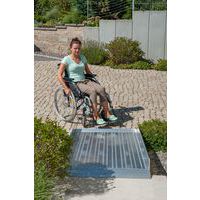 Rampa de acesso para PMR adequada para degraus altos com uma capacidade de carga de 400 kg. Superfície de rolamento com perfuração especial para uma segurança antiderrapante ideal. Rebordos de proteção disponíveis para maior segurança. Produto pronto a utilizar e fácil de transportar. Conceção robusta para uma utilização intensiva. Acessibilidade pessoas com incapacidades Garantia do cliente : 2 anos