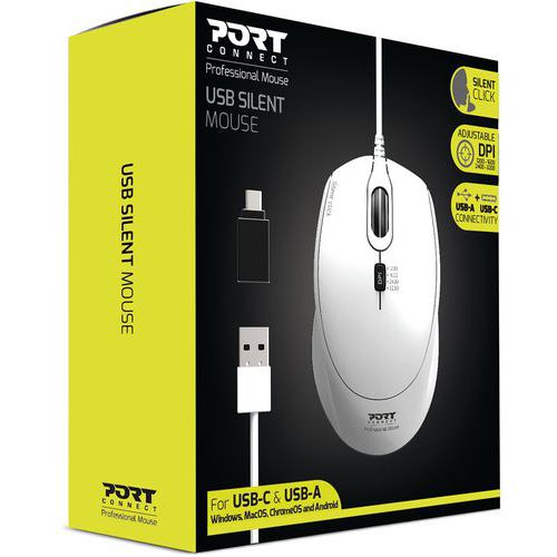 | Nome do artigo | Rato com fios Pro silencioso, branco – Port connect, Tipo de sensor: Ótico |