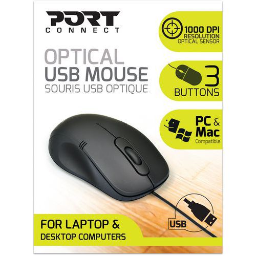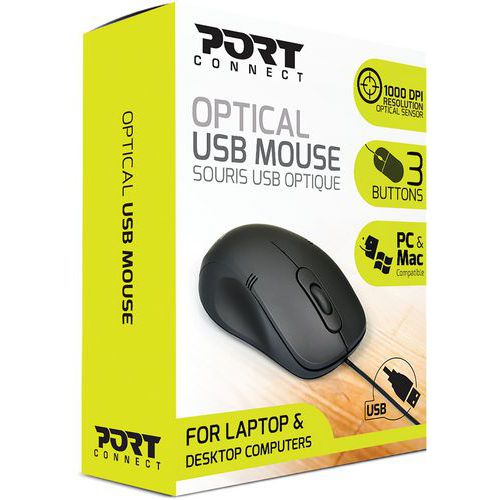 | Nome do artigo | Rato de secretária com fio, de utilização ambidextra – Port connect, Tipo de sensor: Ótico |