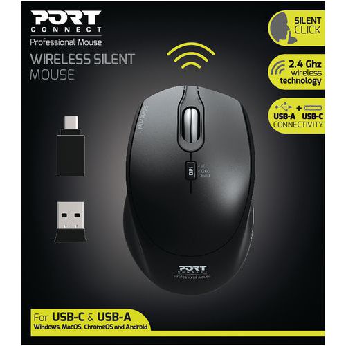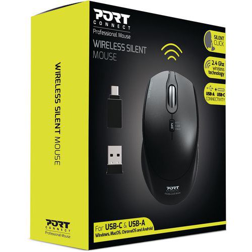 | Nome do artigo | Rato sem fios Pro silencioso, preto – Port connect, Tipo de sensor: Ótico |