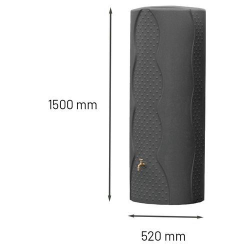 Recuperadores de água da chuva 100% em polietileno de alta densidade de 300 L, fáceis de instalar e de utilizar. Tingimento desde o interior e com tratamento contra os raios UV, sem desenvolvimento de algas. A sua forma cilíndrica reduz a ocupação de espaço no solo e permite uma capacidade máxima. Perfeito para espaços verdes, estaleiros, oficinas ou edifícios industriais. Design elegante, para colocação num terraço.