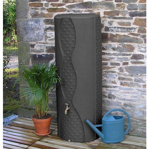 Recuperadores de água da chuva 100% em polietileno de alta densidade de 750 L, fáceis de instalar e utilizar. Tingimento desde o interior e com tratamento contra os raios UV, sem desenvolvimento de algas. A sua forma cilíndrica reduz a ocupação de espaço no solo e permite uma capacidade máxima. Perfeito para espaços verdes, estaleiros, oficinas ou edifícios industriais. Design elegante, para colocação num terraço.