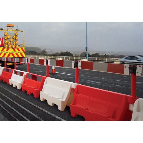 As barreiras podem ser preenchidas com líquido ou areia para aumentar o peso, se necessário.