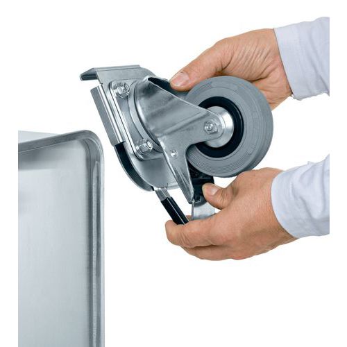 Roda amovível para caixa K470 e Eurobox, Cores: Prata/zinco, Material: Aço cromado, revestimento em borracha