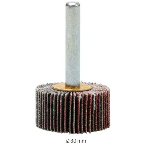Roda de lamelas com haste, para utilização em tarefas de limpeza e acabamento em vários materiais. Para montar em máquinas portáteis elétricas ou pneumáticas. De utilização flexível e leves, as rodas de lamelas permitem realizar trabalhos de rebarbamento, limpeza e acabamento.