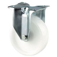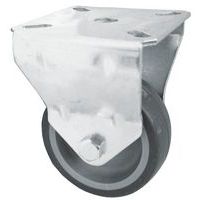 - Rodízio fixo de aparafusar em chapa de aço, adequado para cargas pesadas.