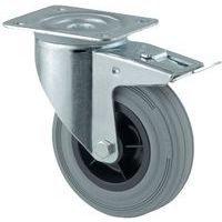- Rodízio giratório com travão e montagem em placa com armação em chapa de aço.