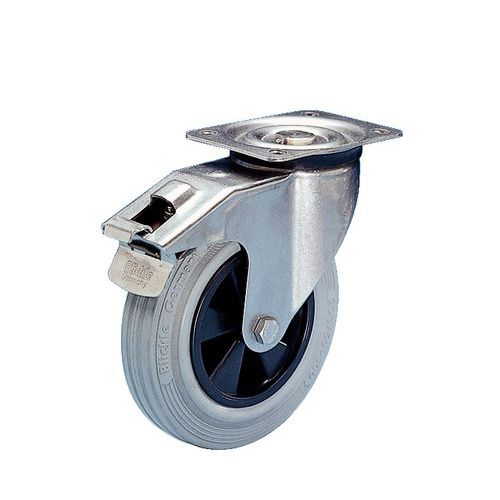 Rodízio giratório com placa e travão - Capacidade de 50 a 205 kg - Cinzento