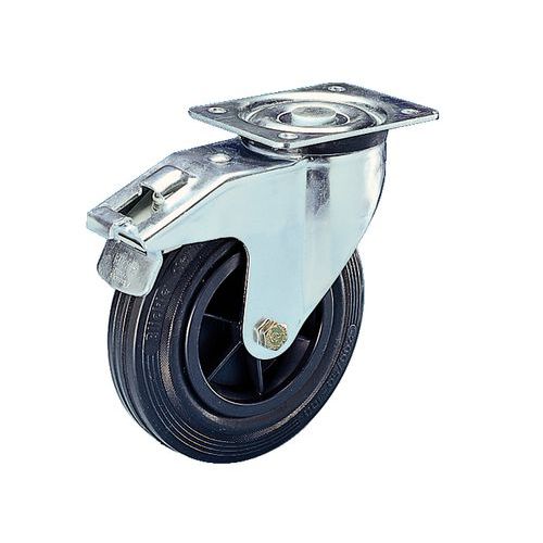 Rodízio giratório com placa e travão - Capacidade de 50 a 295 kg - Preto