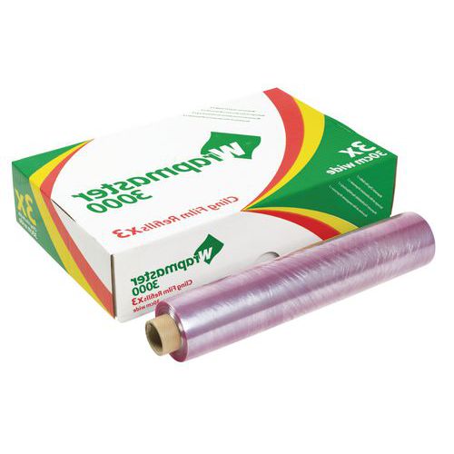 | Nome do artigo | Rolo alimentar Wrapmaster, Comp.: 300000 mm, Uso alimentar: sim, Cores: Transparente, Espessura: 8.5 µm |