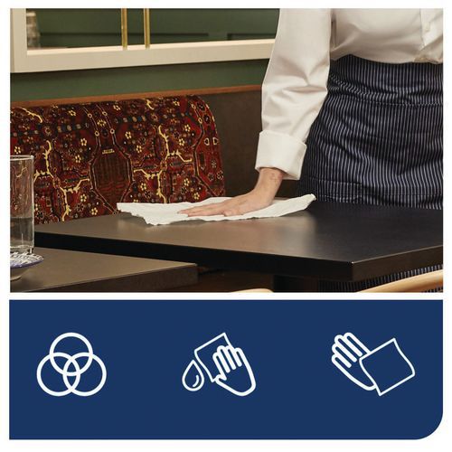 Rolo de limpeza muito resistente e ultra-absorvente com sua tecnologia Quick Dry. Modelo em 2 espessuras. Folhas pré-cortadas.