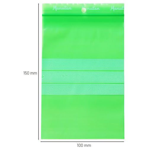 Saquetas zip recicladas – verde 100 µm – Manutan Expert, Espessura: 100 µm, Material: Polietileno Saquetas zip recicladas – verde 100 µm – Manutan Expert, Espessura: 100 µm, Material: Polietileno