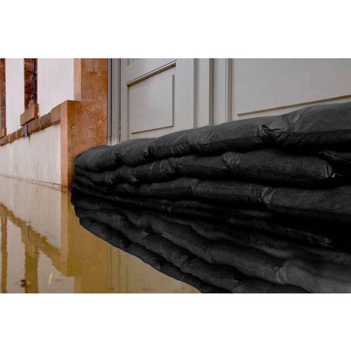 Saco anti-inundação à base de um polímero superabsorvente que absorve 80 a 100 vezes o seu peso de água doce para atingir um peso semelhante ao dos sacos de areia.