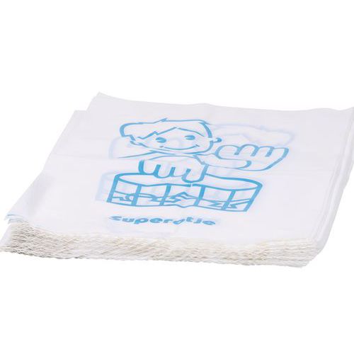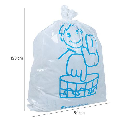 O saco de lixo branco Otje é duas vezes mais espesso do que os sacos de lixo tradicionais. Grande resistência a rasgões. Impressão de sinalização dos dois lados. Saco de lixo reutilizável.