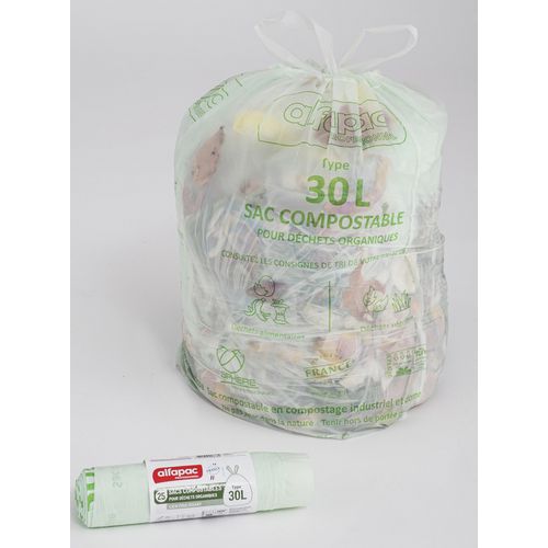 | Nome do artigo | Saco de lixo – atilho deslizante – resíduos orgânicos 30 L – Alfapac, Capacidade: 30 L, Espessura: 18 µm |