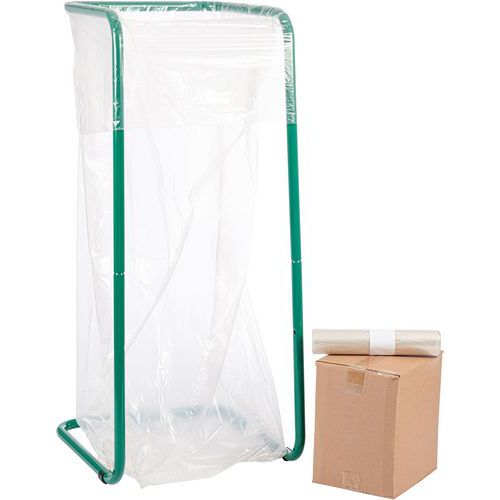 Sacos de lixo de 400 litros, perfeitos para a recolha de películas. Fabricados a partir de LDPE. Embalados em rolos de 7 sacos, com 12 rolos por caixa. Cada saco tem capacidade para cerca de 18 kg de película. Os sacos são perfurados e não impressos.
