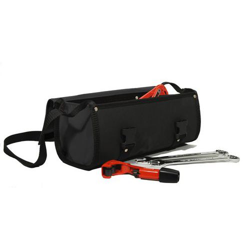 Composição: – 1 fecho com aba flexível e 2 ganchos – 1 compartimento grande para arrumação de ferramentas – 1 pega central de transporte manual – 2 pegas laterais de transporte manual – 1 alça de transporte ao ombro