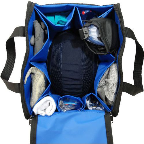 | Nome do artigo | Saco industrial para arrumação de EPI, Cores: Azul Preto, Largura total: 330 mm, Profundidade total: 230 mm |