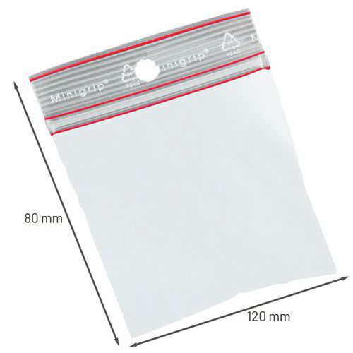 Saqueta plástica Minigrip – 100 µ – Padrão, Espessura: 100 µm, Material: Polietileno, Altura: 120 mm