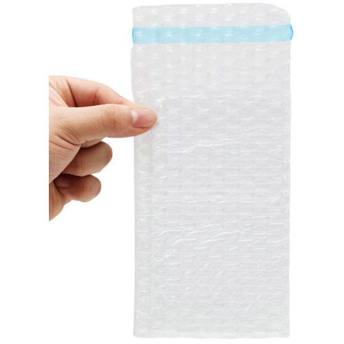 Qualidade Premium, camada tripla de 8 µ com elevada resistência à perfuração. Introdução fácil dos produtos. Revestimento interior de bolhas de tecnologia de isolamento AirCap. Leve: adapta-se perfeitamente a produtos de todos os formatos. Saqueta plástica de bolhas com fecho por fita autocolante.