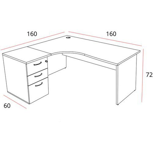 | Nome do artigo | Secretária compacta com bloco-gavetas, Tipo de base: Em L, Montagem: Para montar, Largura total: 160 cm |