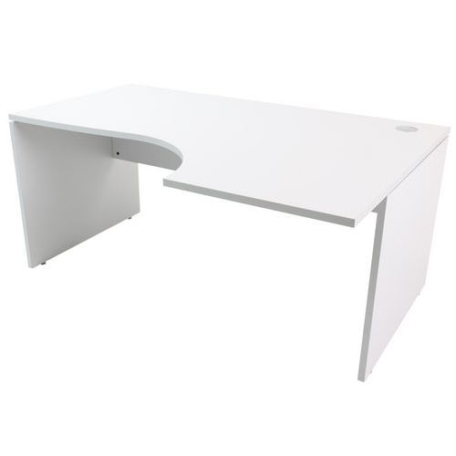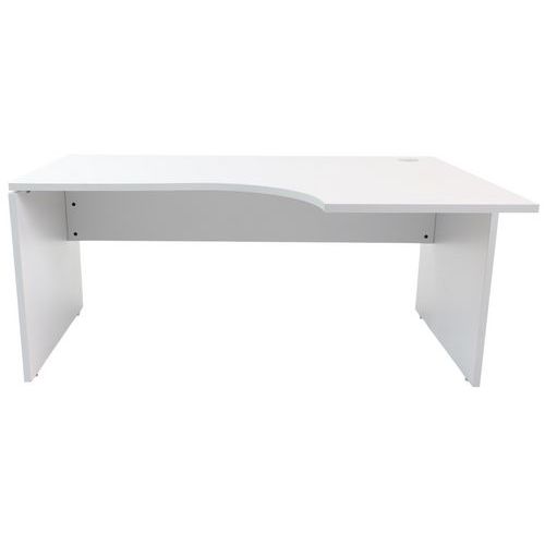 Secretária compacta concebida para trabalhar com computadores, disponível com canto à direita ou à esquerda. Tampos em painéis melaminados com espessura de 25 mm, com tratamento antirreflexos e antirriscos, com propriedades antibacterianas. Tampos com 1 obturador, com diâmetro de 80 mm, para a passagem de cabos. Bases dos painéis equipadas com parafusos de regulação, montagem com painel de fundo estrutural. Coloque o seu ecrã a uma distância de trabalho confortável. Qualidade E1, densidade de 650 kg/m3. Cantos ABS antichoque de 2 mm.