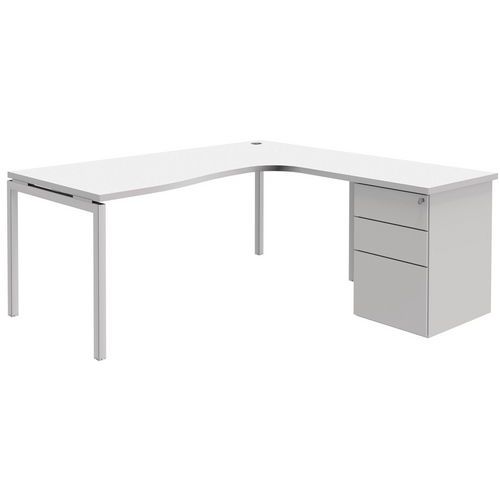 Secretária ergonómica com bloco-gavetas Open - Branco/branco