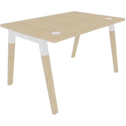 Secretária individual para espaços de trabalho em grupo. Pés em trapézio que aliam o calor da madeira maciça à robustez do metal. Estética pura e natural que responde às tendências atuais. Ideal para teletrabalho