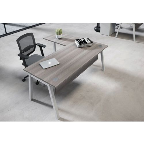 Secretária individual ideal com superfície melaminada. Eletrificação: tampo com orifícios para a passagem de cabos. Painel melaminado e tampo Structurex® com cantos em ABS antichoque de 2 mm. Pés oblíquos com estrutura em arco A. Ideal para teletrabalho