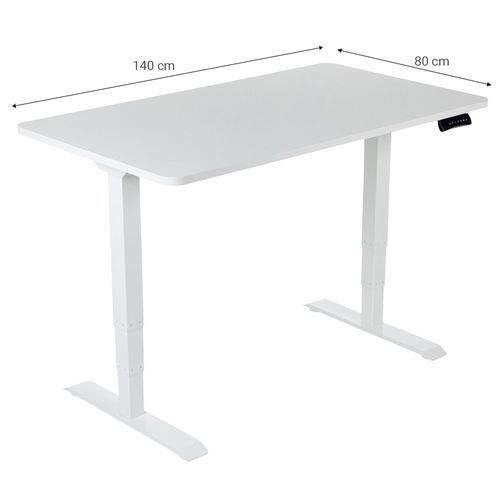 Secretária elétrica ergonómica graças à altura regulável por interruptor. Dois motores integrados nos pés. Ideal para trabalhar protegendo contra os problemas de costas. Capacidade de carga: 100 kg. Entregue desmontada, montagem simples.