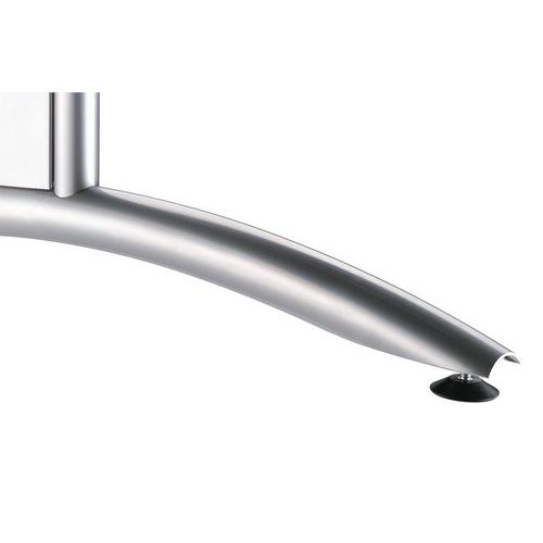 Secretária com design aperfeiçoado. Passagem dos cabos sob a secretária. Tampo em melamina, esp. 25 mm equipada com rebordo antichoque.